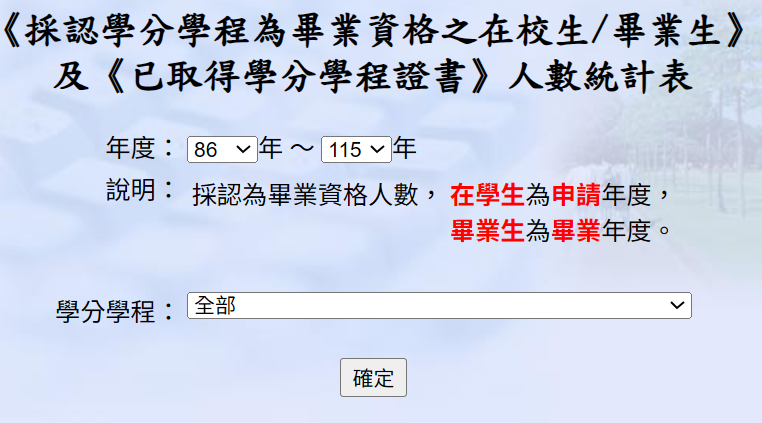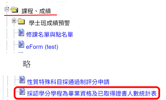 教師登入校務資訊系統 → 課程、成績 → 「採認學分學程為畢業資格及已取得證書人數統計表」,