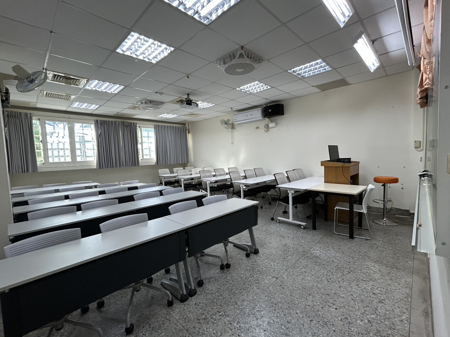 | 課桌、課椅 | 如圖示 | 平面/階梯 | 平面 | 講桌 | 數位講桌 |