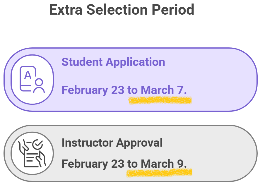 - Approval: You will see the course marked as 'extra selection' in your course list. Please log in to the Academic Information System to check the results.